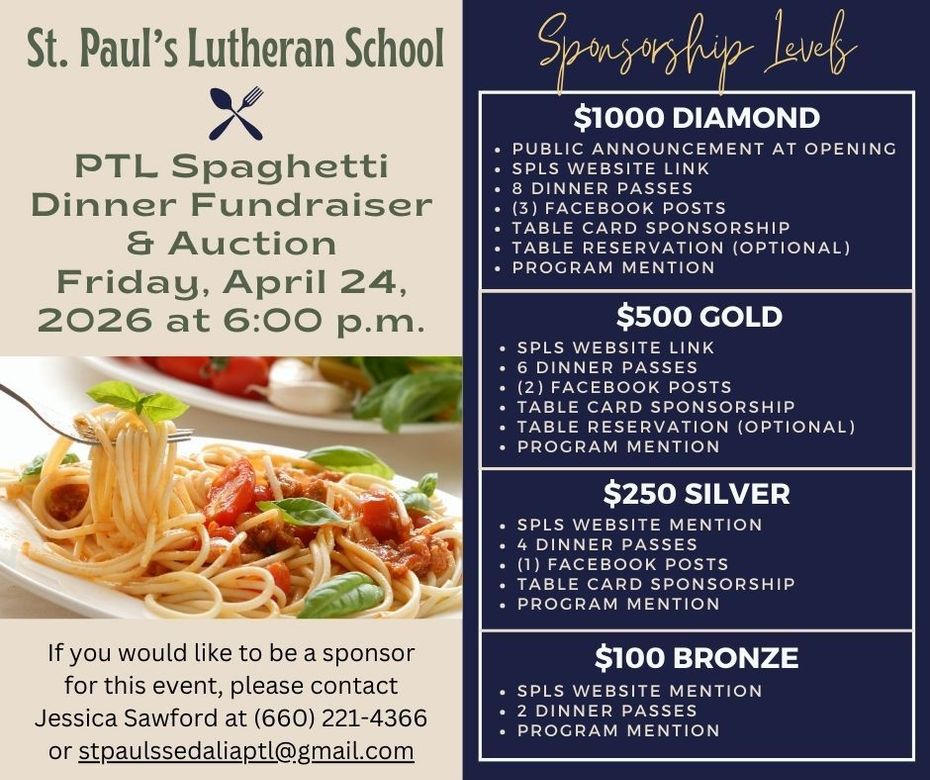 PTL Spaghetti Dinner Fundraiser and Auction 2026